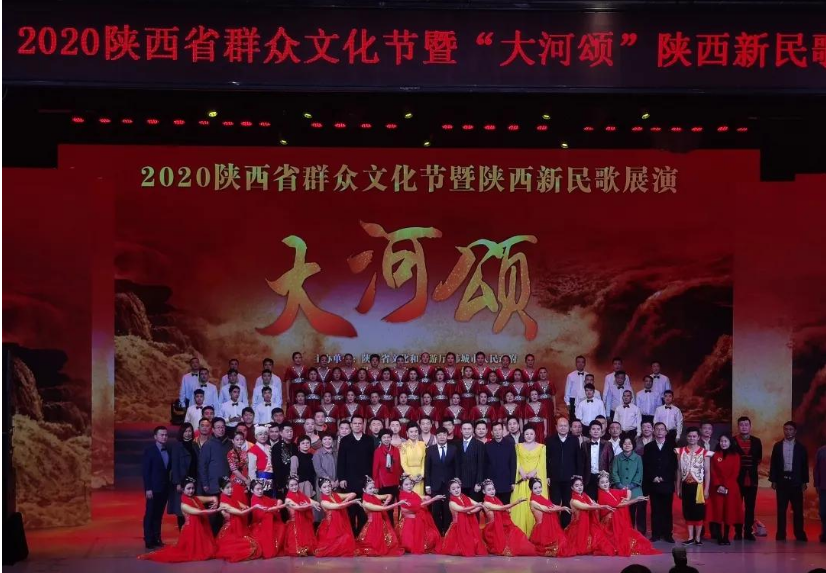 你晓得天下的黄河,几十几道弯、几十几只船,几十几只船上有几十几根杆,几十几个艄公把船搬……”12月4日晚,伴随着歌曲《天下黄河九十九》气势磅礴、高亢深沉的声音把人们带回到奔流不息、滋养一代代华夏儿女成长的母亲河边,由陕西省文化和旅游厅、韩城市人民政府主办,陕西省文化馆、韩城市文化和旅游局承办的2020陕西省群众文化节暨“大河颂”——2020陕西新民歌展演在韩城市文化中心拉开帷幕,一首首流淌着黄河基因、展现着黄河精神的时代歌谣,在舞蹈、全息投影等的烘托下,共同谱写出九曲黄河激昂、奋进的新乐章。
