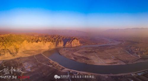九曲黄河十八弯,在景泰的龙湾村,黄河拐了一个大大的 S 形。在黄河石林,乘坐筏子的起点就是位于龙湾村的龙湾码头,而终点就是黄河石林最著名的饮马大峡谷的入口,整个路程就是这个 S 形的一半,大约 3 公里的河道。