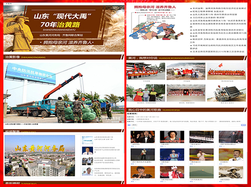 今年是山东人民治理黄河70周年,山东河务局进一步加大宣传力度,积极探索新媒体宣传途径,与齐鲁网合作开设了“山东‘现代’大禹七十年治黄路”专题网页(专题网页地址:http://www.iqilu.com/html/zt/zixun/huanghe/)。专题网页包括“治黄影像”“视频聚焦”“最新播报”“黄河我想对你说”“我心目中的黄河歌曲”五大板块,集中展示了中国共产党领导下的山东人民治理黄河70年来取得的伟大成就,道出了黄河儿女对母亲河的无尽深情。