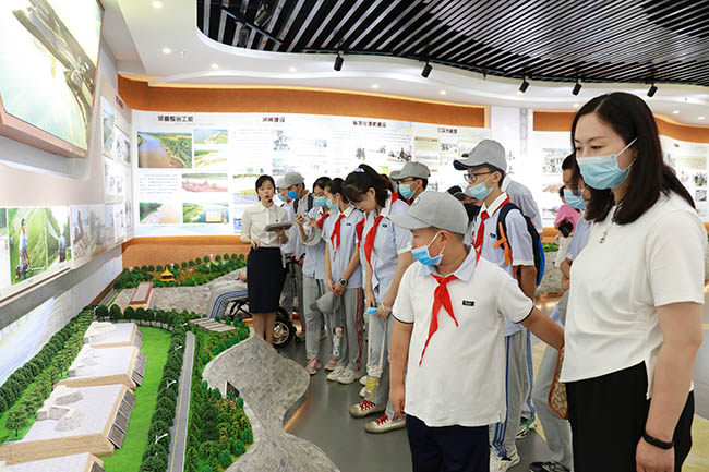 活动中,解说员采用互动方式,为师生和家长详细介绍黄河自然概况、历代治河名人与治河策略,着重讲述人民治黄以来的几次重大险情抢护、重要工程建设及黄河岸边的红色故事等。讲解还与地理课程知识点相结合,同步进行黄河调水调沙、“二级悬河”、南水北调等水情知识宣教,趣味解读捆抛柳石枕、反滤围井等传统黄河防汛抢险技艺。这种沉浸式宣教体验,既传播了黄河保护治理知识,又弘扬了黄河文化。
