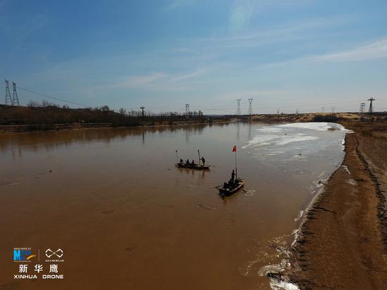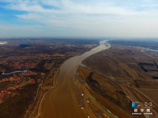 3月14日,内蒙古自治区呼和浩特市最高温度达到11℃,“苏醒”的黄河携着流凌,自西向东流经呼和浩特市托克托县。