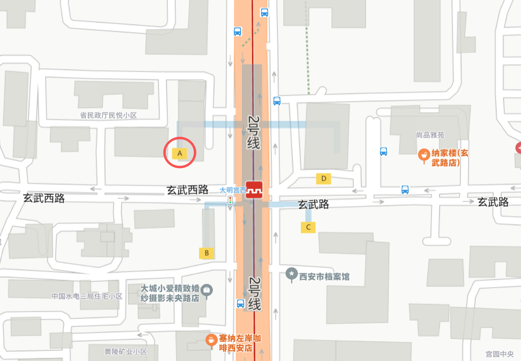 2.面试集中地点:西安市未央区未央路和玄武路(玄武西路)十字西北角(地铁2号线大明宫西站A口,见附件5)。集中后由工作人员统一带领前往面试现场。