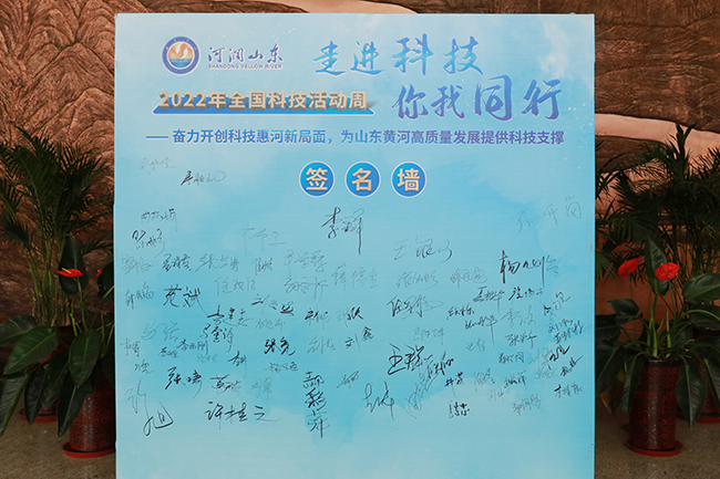 24日上午,2022年“山东黄河科技活动周”启动仪式上,山东河务局机关110余干部职工在“主题签名墙”签名并获赠科技图书,随后共同参观山东黄河科技成果宣传展,27块展板重点展示创新团队、合作名企优秀科技创新成果以及科技创新人物风采。河南河务局机关编印《河南黄河科技》,专题科普数字孪生流域、水资源节约集约利用知识,局属各单位有的利用党建示范带普及黄河历史文化、宣传防洪减灾知识等,有的开发科技答题小程序,实现云端科普。