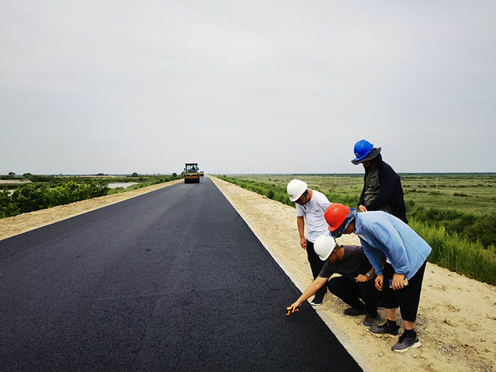 黄河下游“十四五”防洪工程北大堤堤顶道路面层施工 王鑫 摄