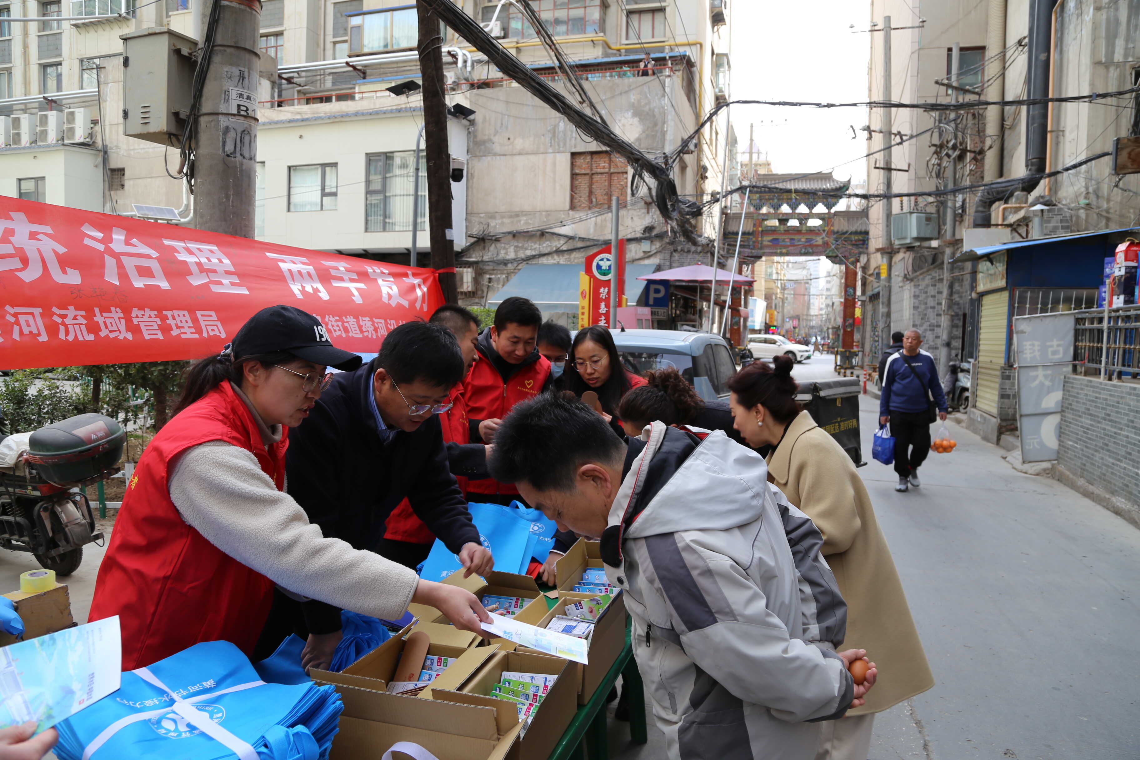 活动现场,党员干部、普法志愿者充分发挥“党建引领+社区联动”协同优势,紧扣全面推动黄河流域生态保护和高质量发展,通过专题宣讲、海报、横幅、展板等矩阵展示,组织签名倡议和发放普法资料、家用节水器具等系统化宣传方式,向社区群众普及黄河保护法等水法规,倡导构建政府主导、企业施治、公众参与的节水型社会建设新格局。