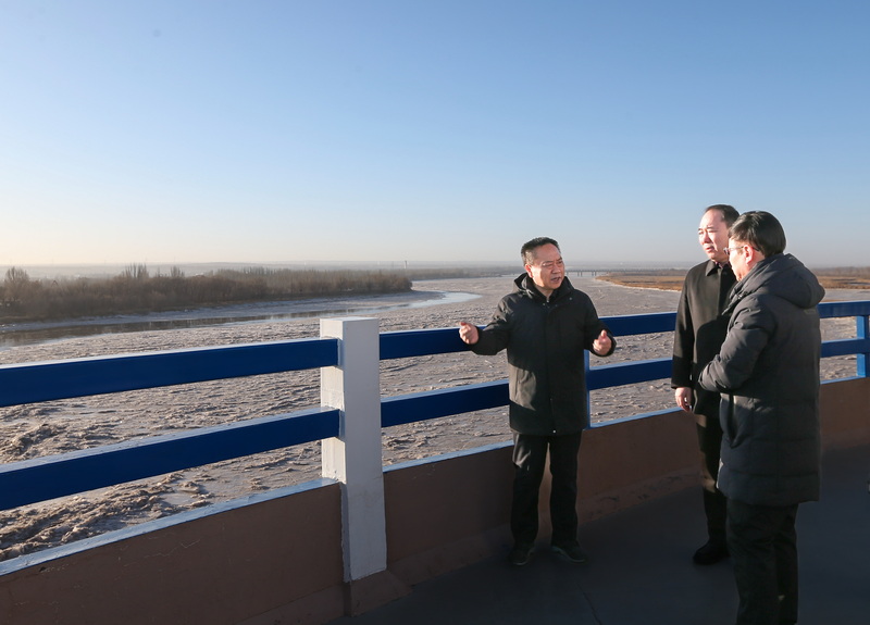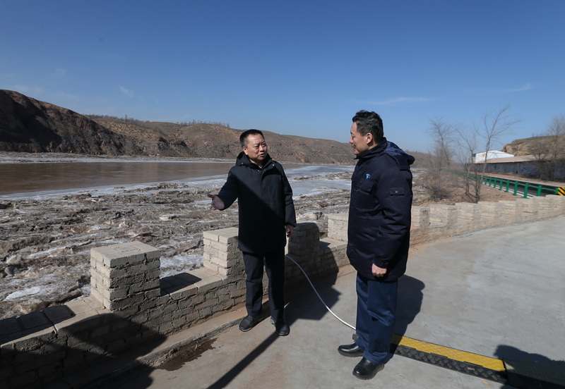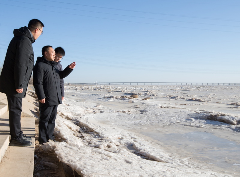 受近期气温回升影响,黄河内蒙古河段开始融冰解冻,2月17日黄河干流内蒙古上段麻黄沟省界断面至海勃湾坝址封冻河段开河10公里,标志着黄河冰封进入开河期。李国英先后深入内蒙古乌海、巴彦淖尔、鄂尔多斯、呼和浩特等黄河防凌一线,实地查勘海勃湾水利枢纽、三盛公水利枢纽、巴彦高勒水文站、乌兰布和应急分凌区、乌拉特前旗红圪卜排水站、杭锦淖尔应急分凌区、达拉特旗二贵圪旦控导工程、万家寨库区清水河县段等地,详细了解河道冰封冻融、凌情监测预报、骨干工程调度、分凌区运用准备、卡冰结坝险情破除、堤防巡查抢险等情况,深入研究部署基于凌情发展的应对措施。