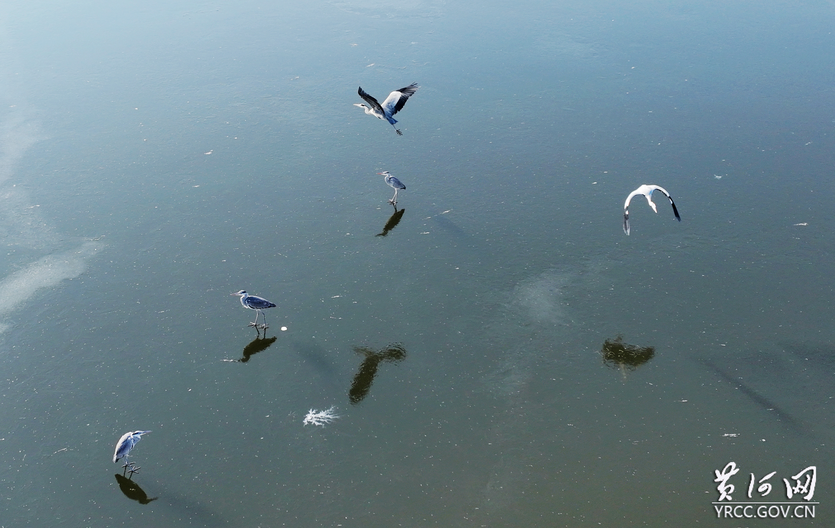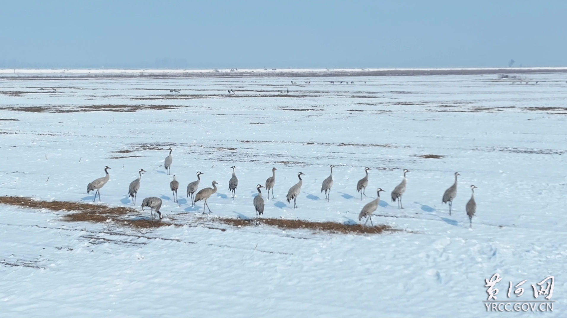 群鸟戏雪映长河