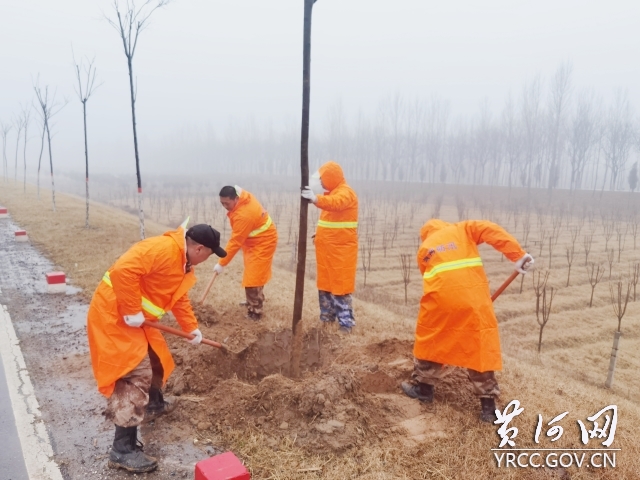 2月28日,河南开封境内普降中雨,开封第一河务局养护、工程公司职工冒雨植树。