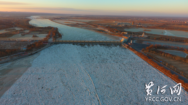 连日来,受冷空气影响,黄河凌情持续发展。截至12月29日10时,黄河累计封河长度共计631.3千米。图为巴彦高勒水文断面12月29日8时30分封冻情况。