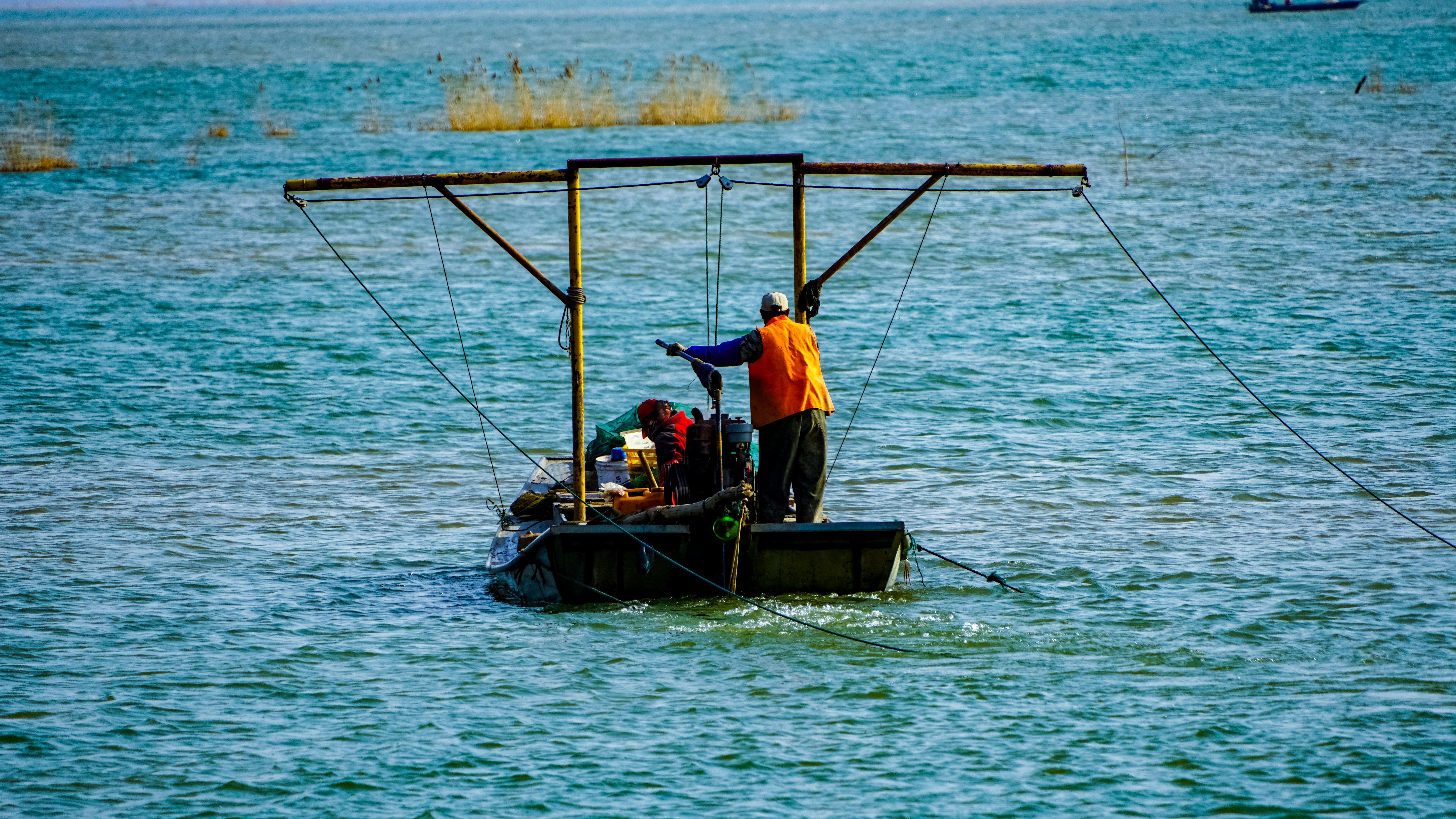 东平湖渔民操舟捕鱼.jpg