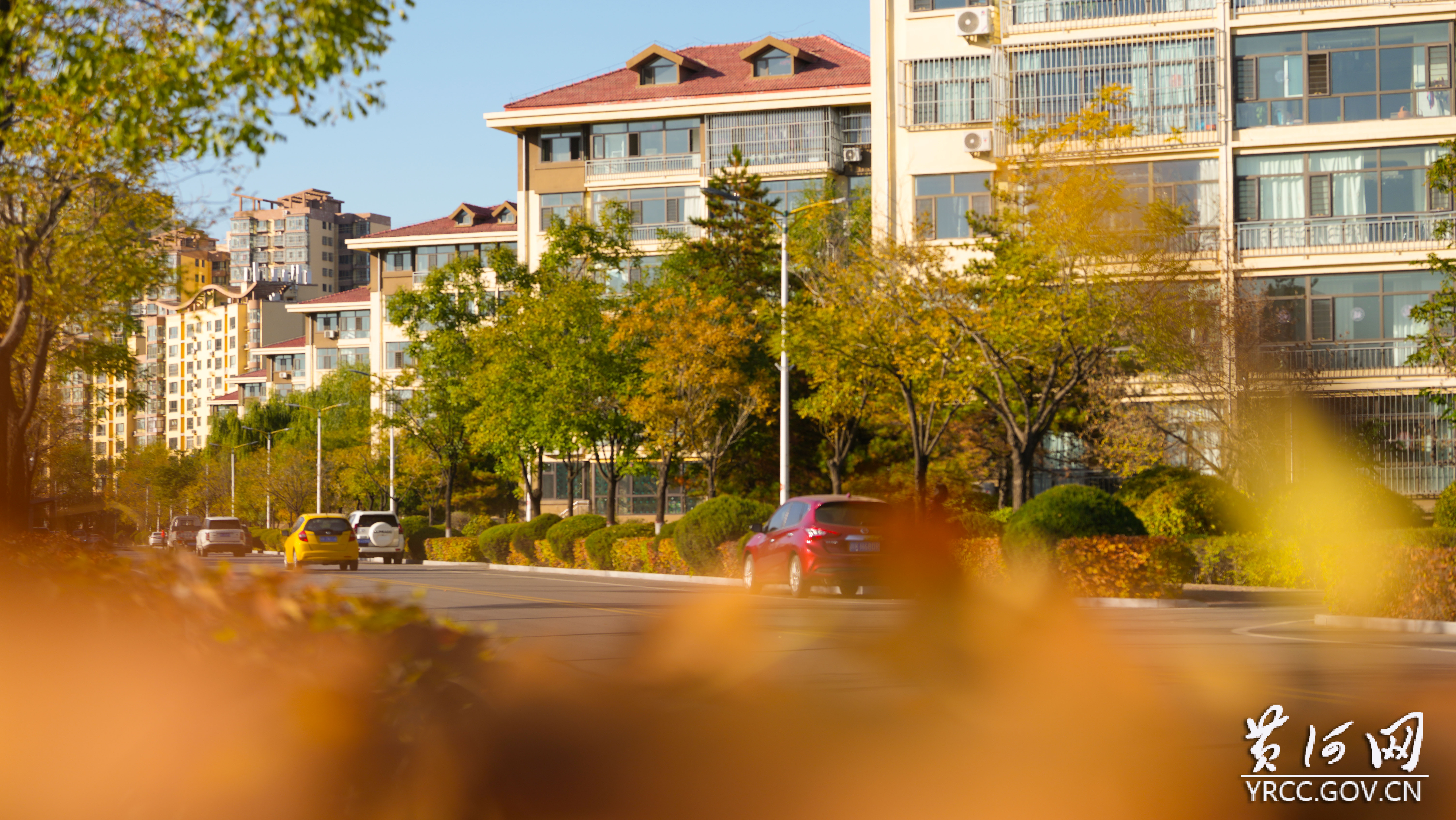 秋日晴空下,神东矿区的生活区洋溢着温暖气息。整洁的道路上车辆悠然行驶,色彩明快的住宅楼错落有致,绿树与斑斓秋叶相映成趣,勾勒出幸福矿区的美好图景。