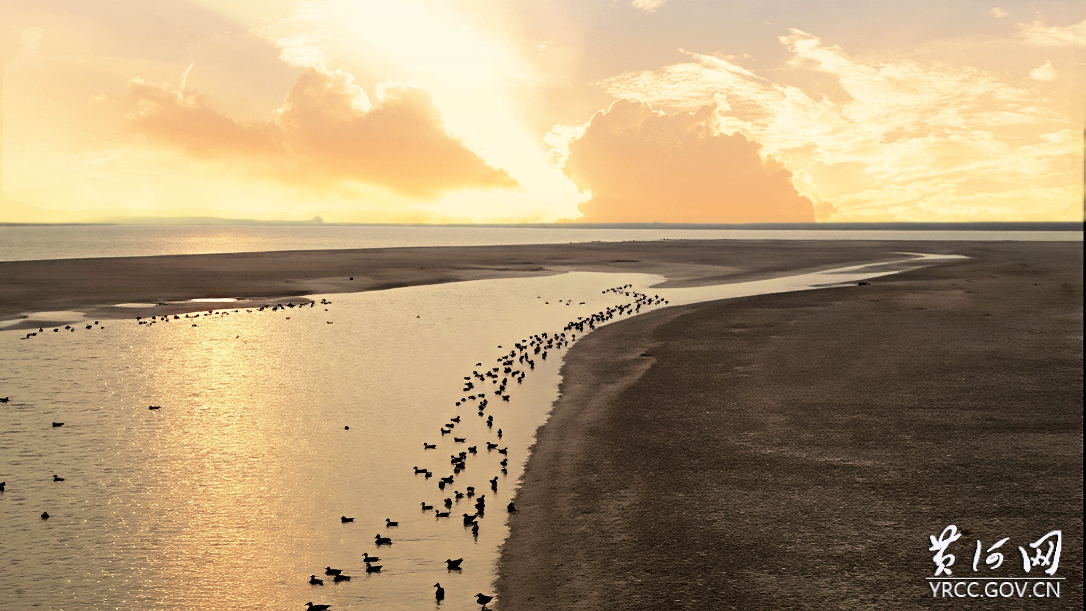 夕阳西下,万鸟归巢,黄河滩区生态画卷正徐徐展开。