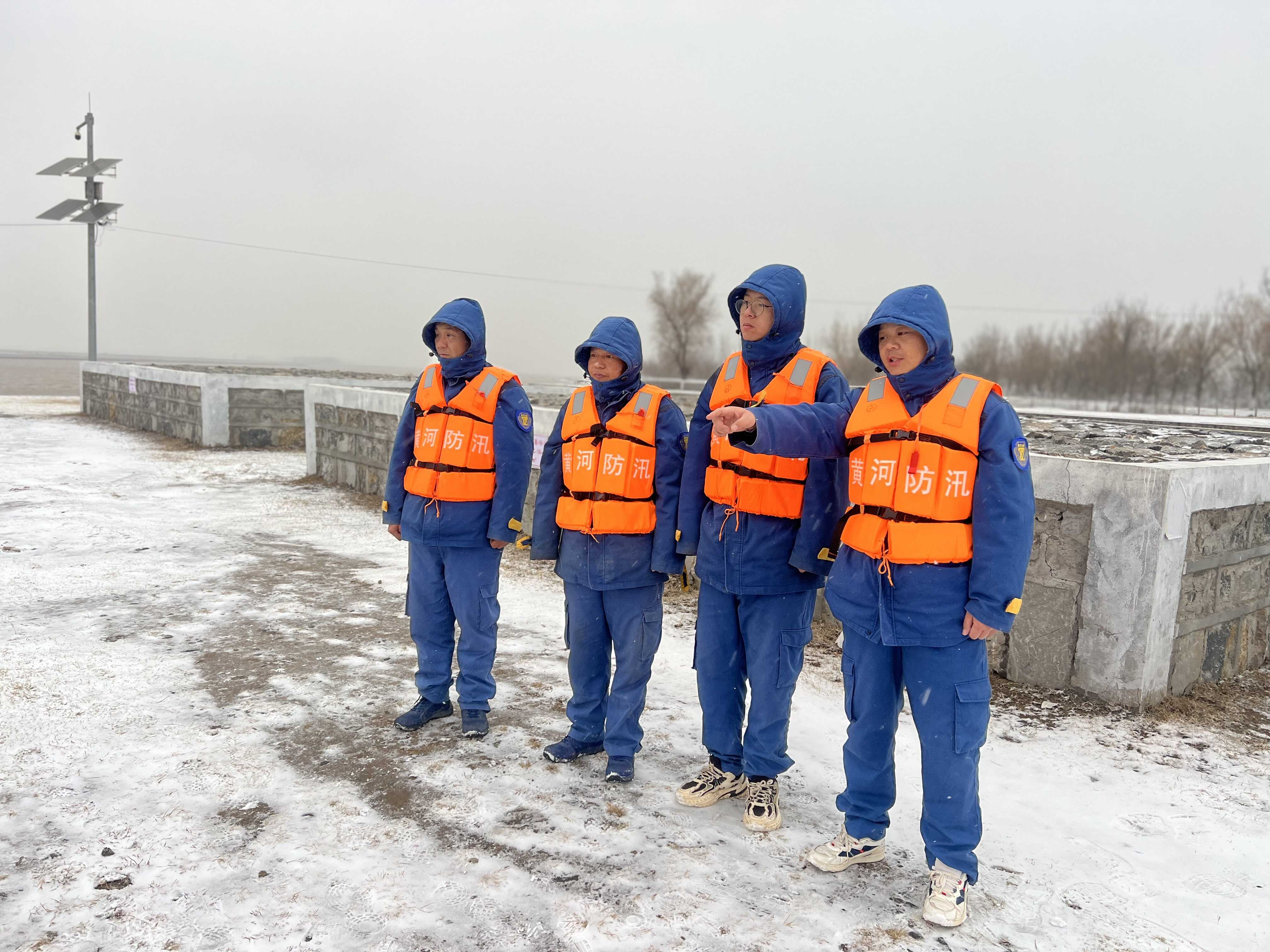 12月,该段严格落实防凌工作,开展雪后巡查,对重点坝岸进行冰凌观测。