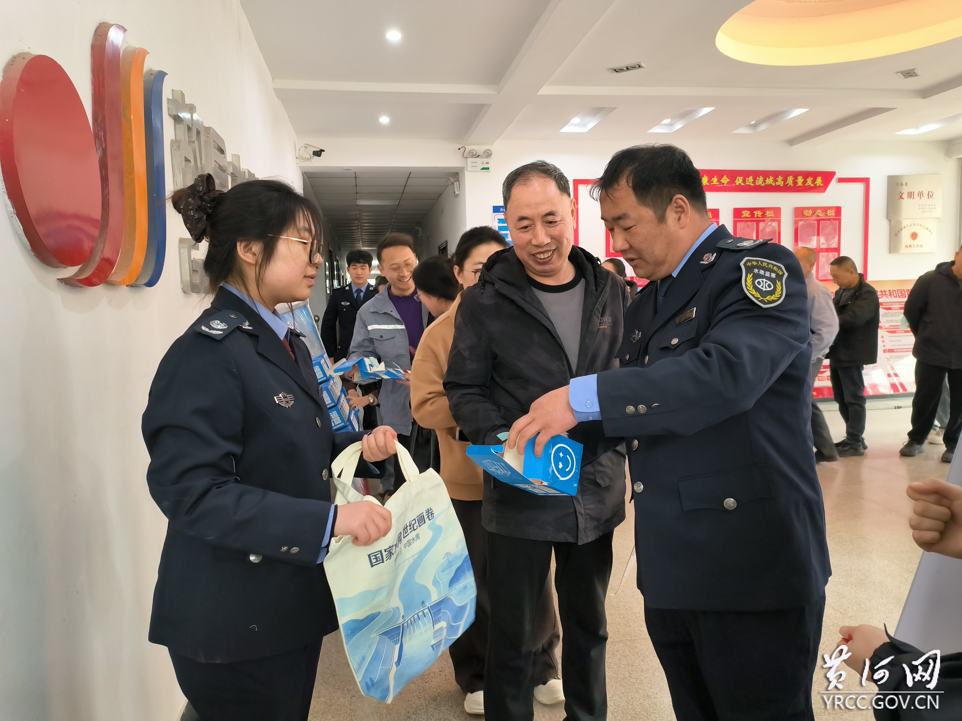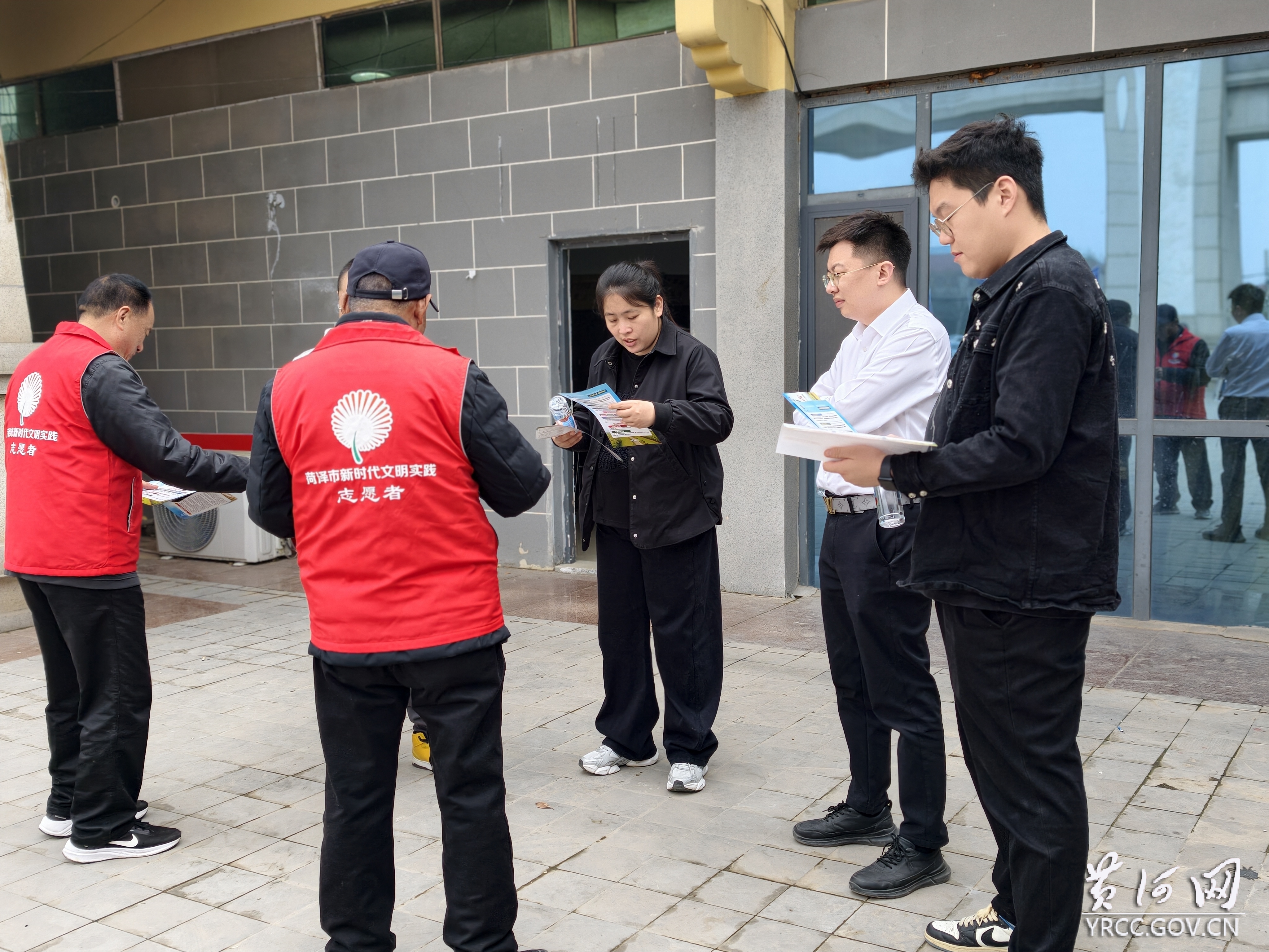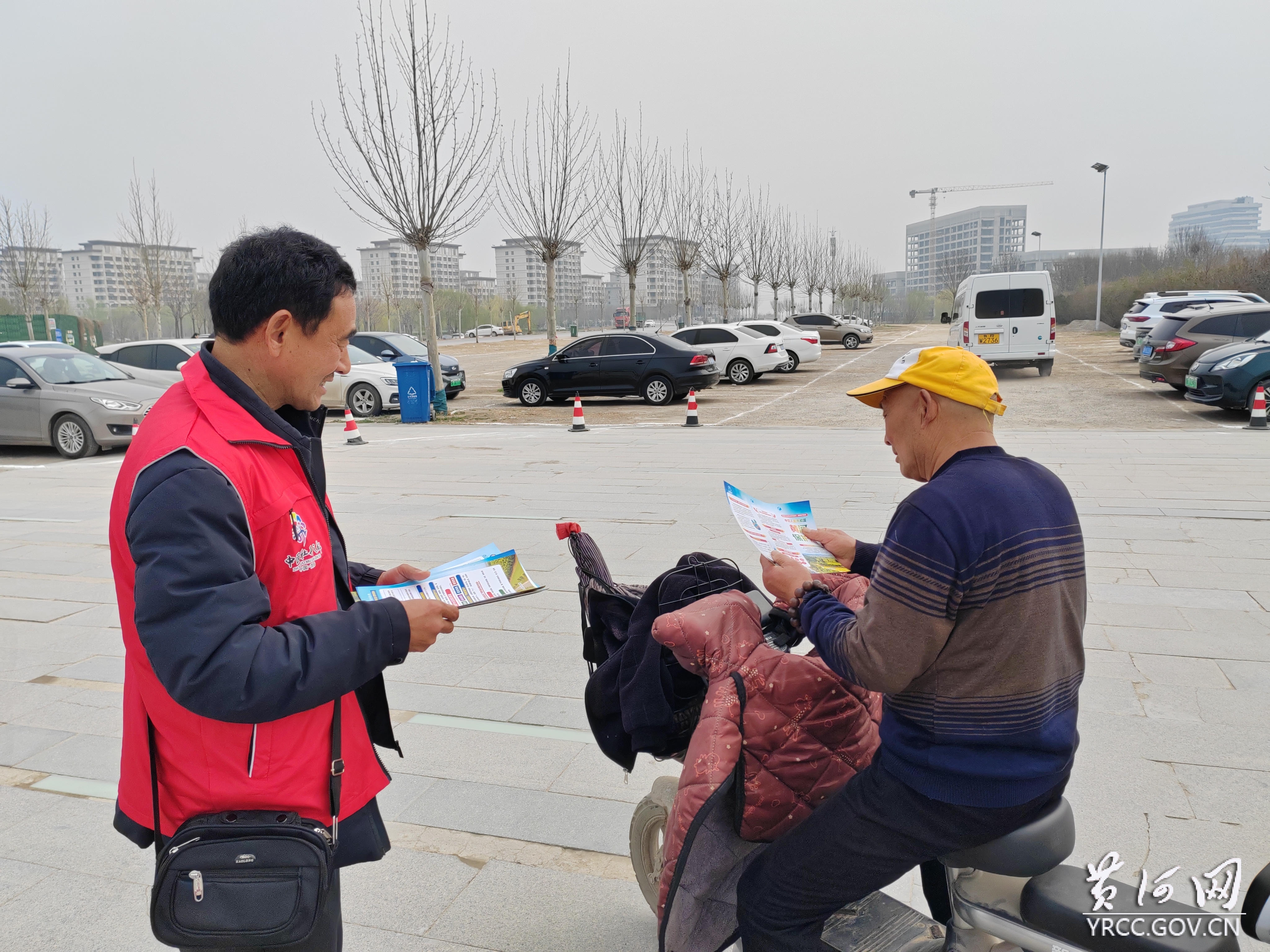 菏泽河务局志愿者向社区居民发放宣传品 申霖 摄