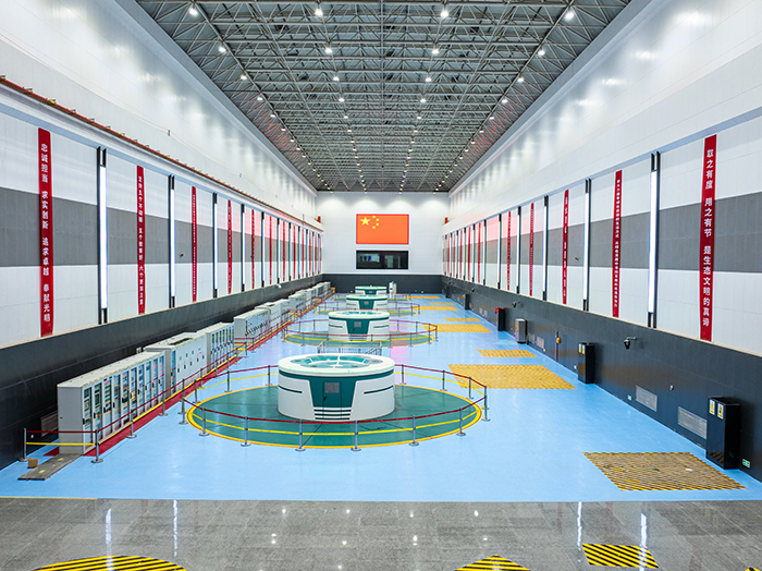 黄河设计院驻阜康抽水蓄能电站项目副总监惠世洞带记者乘电梯从10层至1层依次参观,每一层都光洁、整齐,各种电线、设备排列有序。在最底层,4台可逆式水轮发电机组正在高速运转。