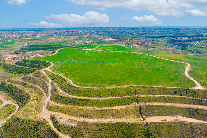 在“双碳”目标指引下,神东煤炭与地方政府配合,在布尔台沉陷区实施“生态治理+光伏发电+现代农业+其他”综合治理模式,建成4万亩生态治理+50万千瓦光伏发电+1万亩牧草产业的示范基地,年发电约10亿千瓦时,年产牧草约1万吨,观光农业、现代养殖、沙棘和沙柳等配套产业项目形成了现代高效农业综合经济体。通过创新研发矸石处理、植被培育等关键技术,成功破解了“煤炭开采必然破坏生态”传统困局,走出了一条煤炭开采与生态环境综合治理的绿色发展之路,探索形成煤炭企业绿色发展的“神东模式”。
