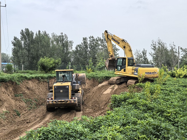 考验接踵而至。频繁的暴雨严重威胁着工程安全。公司迅速行动,先后调集挖掘机、装载机、渣土车10余辆,奔赴易出险堤段。在重点地段提前埋设排水管道,并派专人进行现场督导,完成水沟浪窝平垫7000余立方米,及时“治愈”工程“创伤”,同时,安排人员扶正树木、修复备防石垛,这项工作一直持续到了9月中旬。