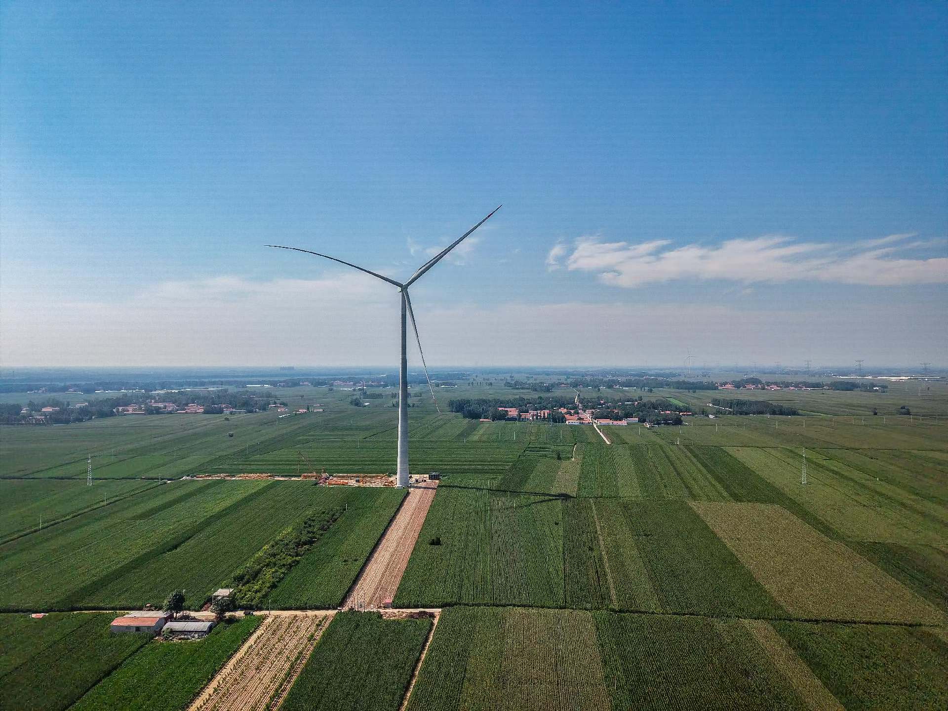 “这是我们总承包建设的馆陶风电项目,不久前已并网试运行。”黄河设计院总承包事业部馆陶风电项目部经理张鹏介绍道,“项目共安装7台风机,每台塔筒高160米,扇叶长度达108米,是目前平原地区在建规模最大、塔筒最高的风电机组。总装机容量50兆瓦,能够满足数万个家庭的用电需求。”