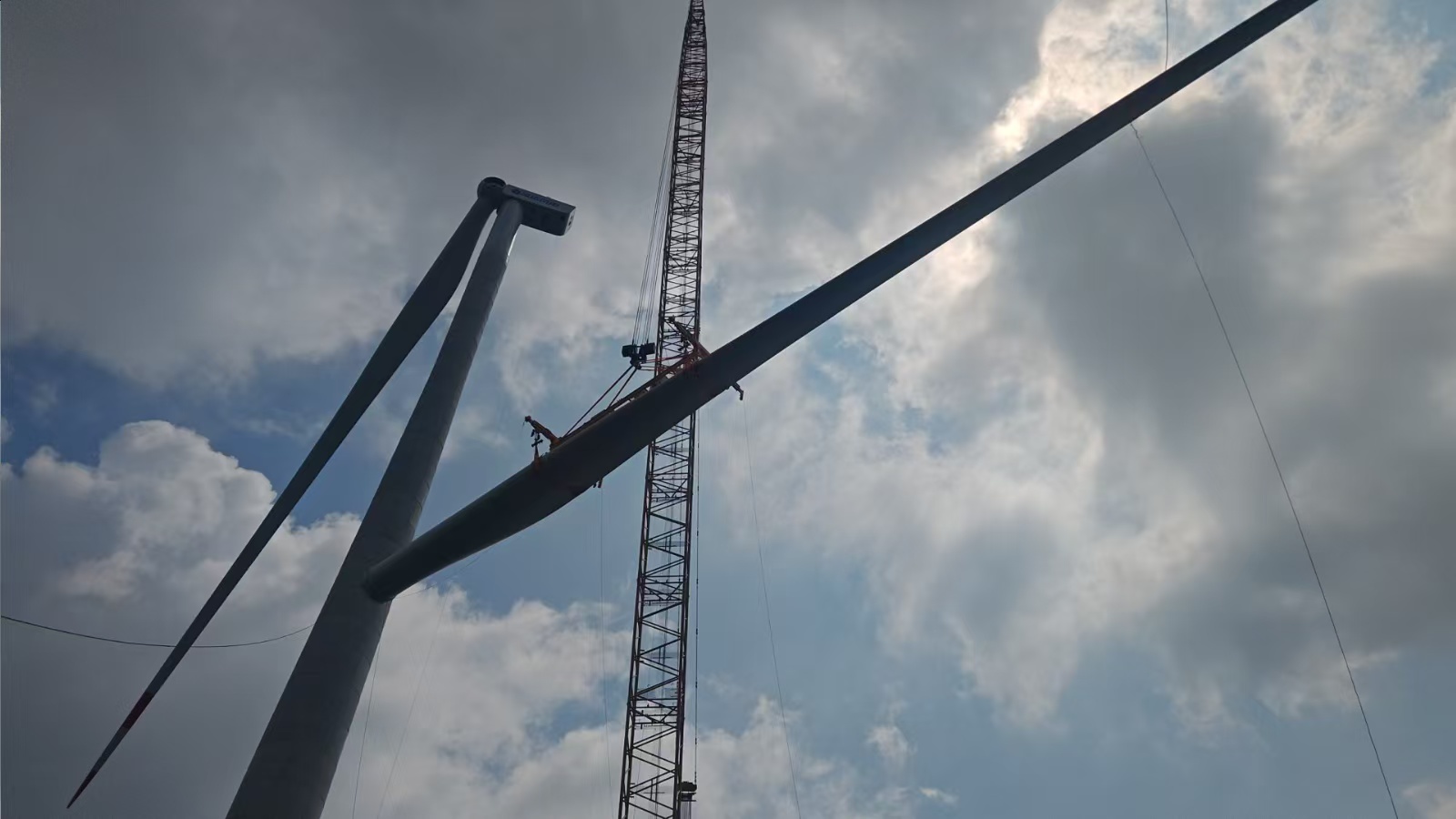 “吊装更是考验技术。需两台吊车相互配合,克服风力晃动,精准将叶片锁扣插入轮毂。稍有不慎便可能损坏组件,不但前功尽弃,更会导致重大损失。在充分的准备和周密的部署下,我们每次吊装均一次成功,零失误完成。”说到这里,张鹏脸上浮现欣慰的笑容。