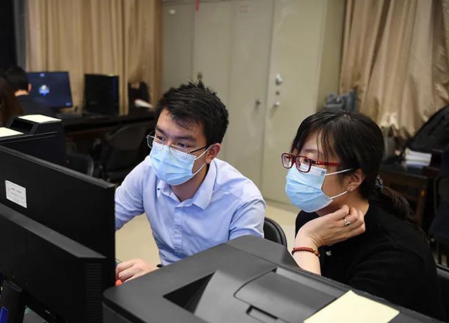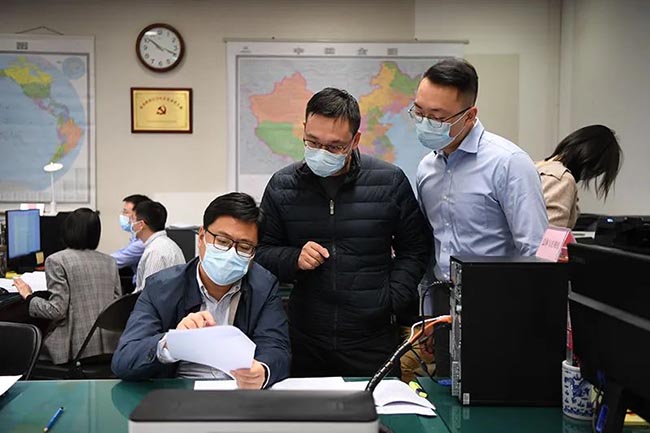 3月5日,国务院办公厅工作专班工作人员在认真工作。新华社记者 任鹏飞 摄