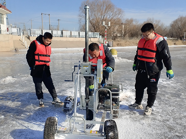 水文测报能力提升工作开展后,水文人的凿冰工具升级换代——便携式电动打冰机、打冰车广泛应用。