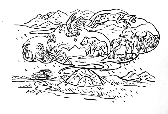 “说到高原植物,咱们青藏高原有一种极为珍贵的花,叫绿绒蒿。这种植物只生长在海拔3000米至4600米以上石滩或冰川边缘,常人很难见到,植物学家称它是‘离太阳最近的花’。”才让说起保护区的动植物,如数家珍,“绿绒蒿不是一种,而是一大类,有好多品种,开出的花形态各异、色彩斑斓,非常珍贵。有蓝色绿绒蒿,有红伞绿绒蒿,它们的根扎得特别深,红伞绿绒蒿一二十年才开一次花,它的花朵像一把大伞,硕大艳丽、亭亭玉立,显得独立骄傲,像极了我们雪山上的女神。”