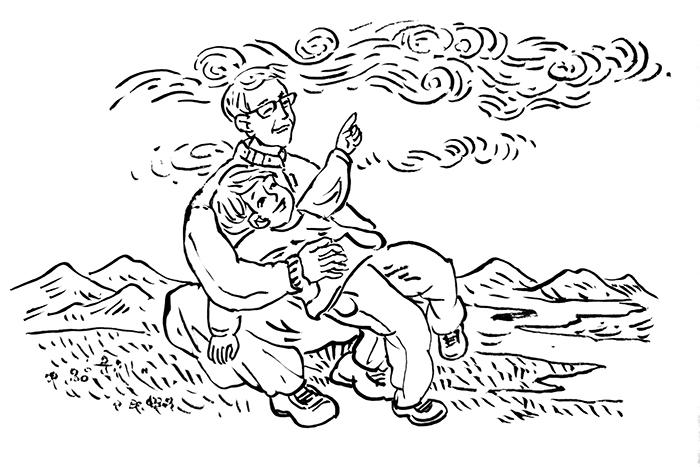 众人连拉带哄,总算把两个孩子弄进帐篷。达瓦叫才让也进帐篷,给小苗苗讲讲高原的故事。