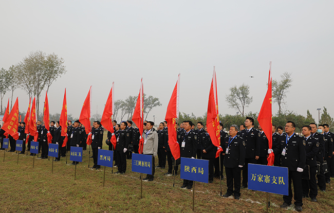 来自山东河务局、河南河务局、黄河上中游管理局、黑河流域管理局、黄委水文局、三门峡水利枢纽管理局、山西河务局、陕西河务局、小浪底水政监察支队、万家寨水政监察支队的12支队伍参加演练,各水政监察队伍带队领导现场观摩。