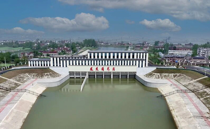 该项目位于无为市刘渡镇,工程规模为大(2)型,等别为Ⅱ等,是一座集防洪、排涝、引水功能于一体的闸站合一堤身泵站。作为巢湖流域防洪治理体系中的关键控制性工程,其设计抽排流量达150立方米/秒,自排流量112立方米/秒,自引流量150立方米/秒。站内共配置6台大型立式轴流泵及同步电机,总装机容量10800千瓦,为区域水安全构建了重要保障。工程建成投运后,在提升流域防洪保安能力、保障城乡供水安全、改善区域水生态环境等方面发挥了关键作用,已成为支撑地方经济社会高质量发展和民生安澜的重要基础设施。