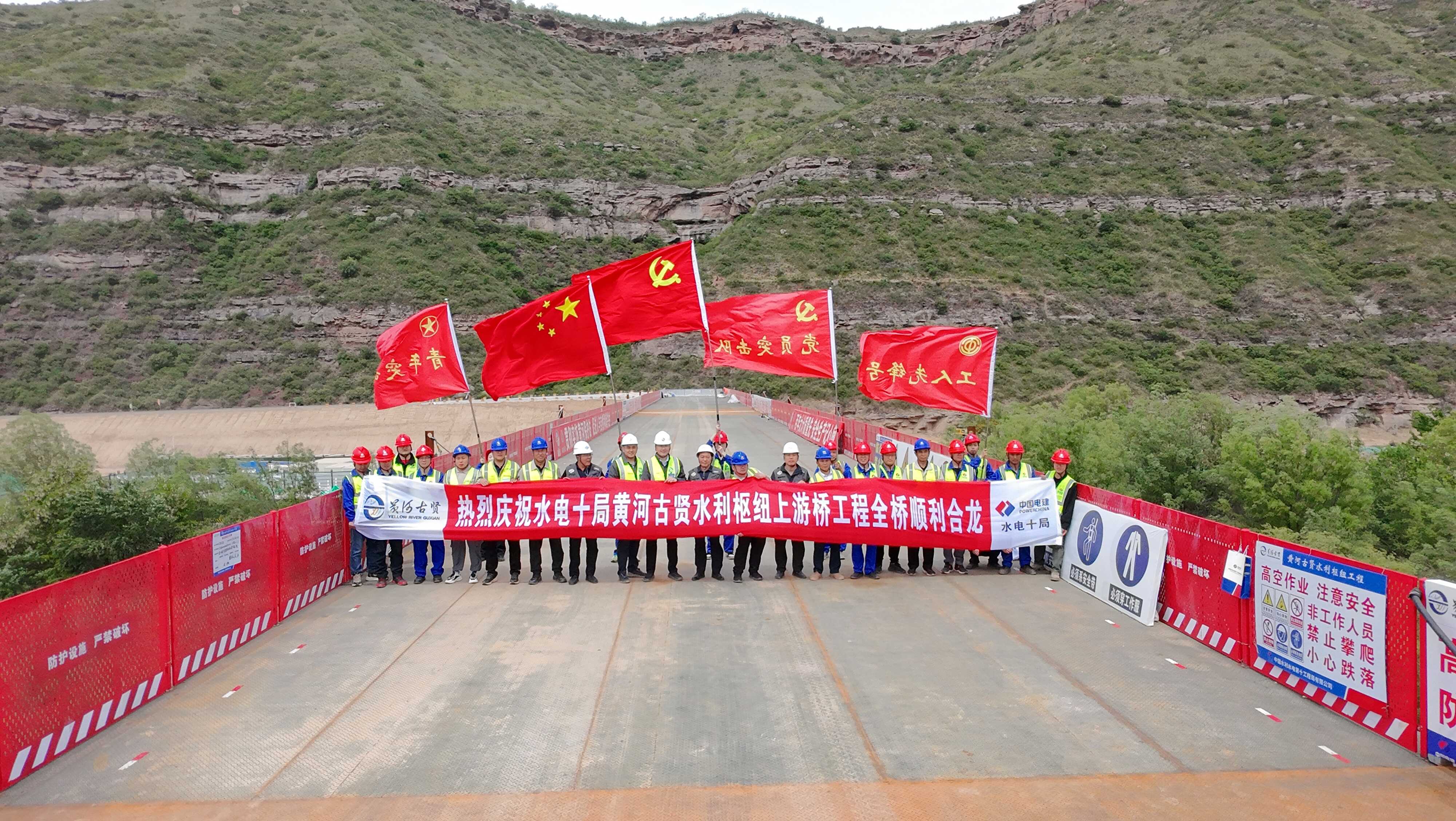 古贤水利枢纽工程上游临时桥合龙