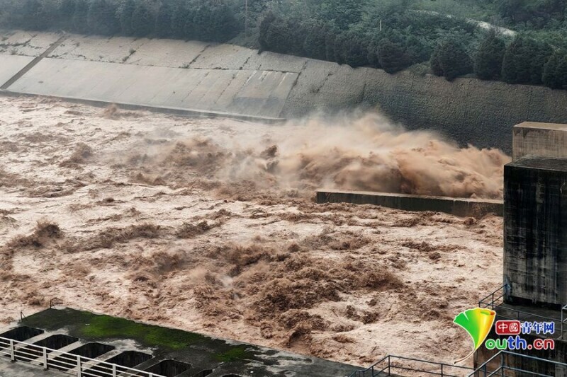 宝鸡峡引渭灌溉中心林家村枢纽管理站泄洪场景。张瑶 摄