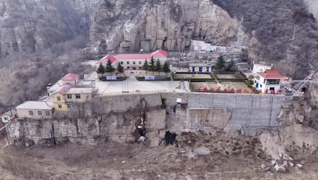 俯瞰龙门水文站嵌在悬崖一侧的全貌(视频截图)