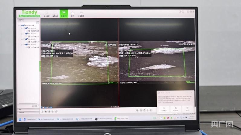 记者看到,晋陕交界的黄河水中大小不一的冰凌碎片在随流漂浮,水流缓慢涌动。这一天,又是水文站日常执行巡测作业的日子。站房前,视频影像测流系统安置在靠近悬崖边的护栏处,两台设备正在实时监测黄河水面。