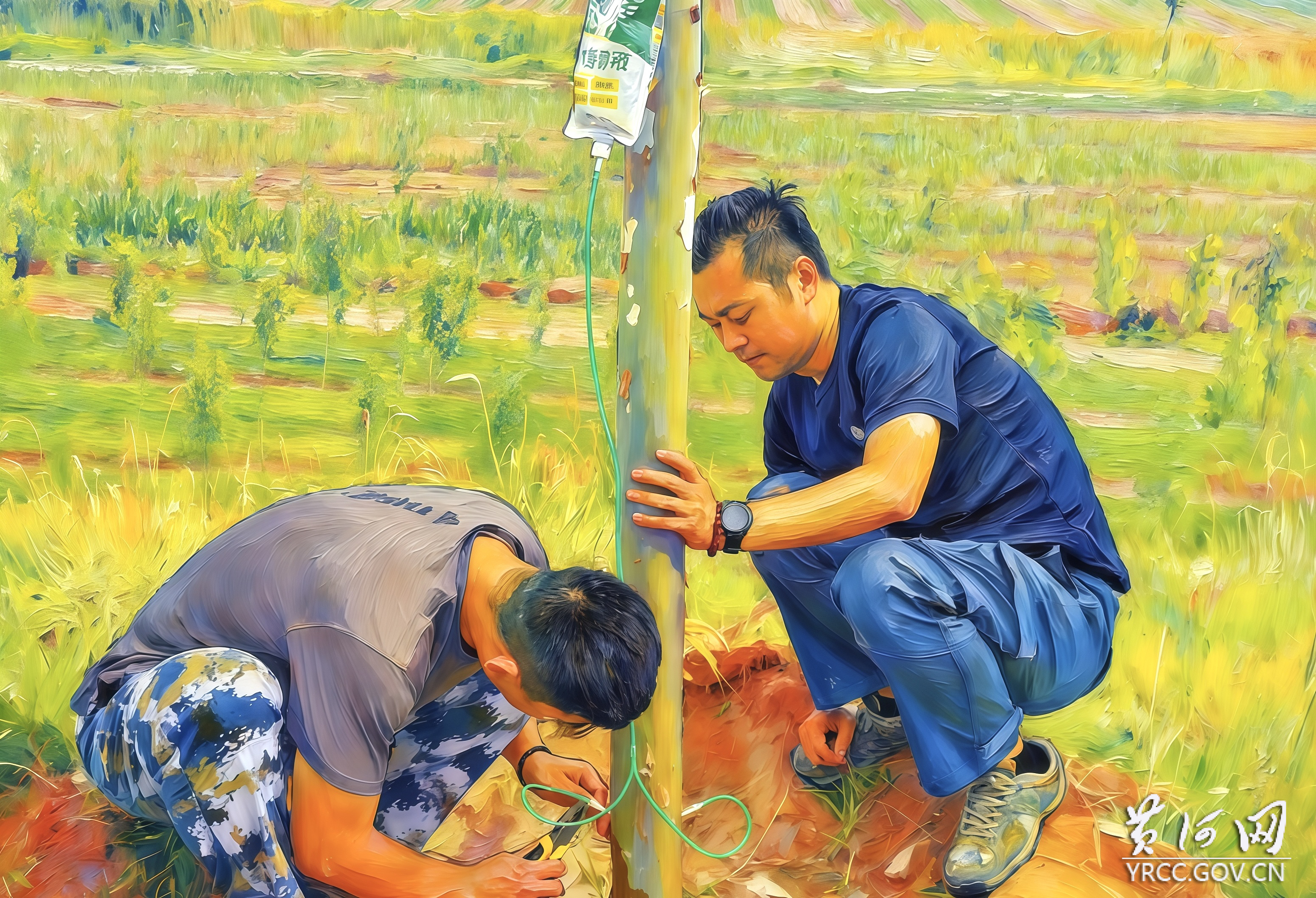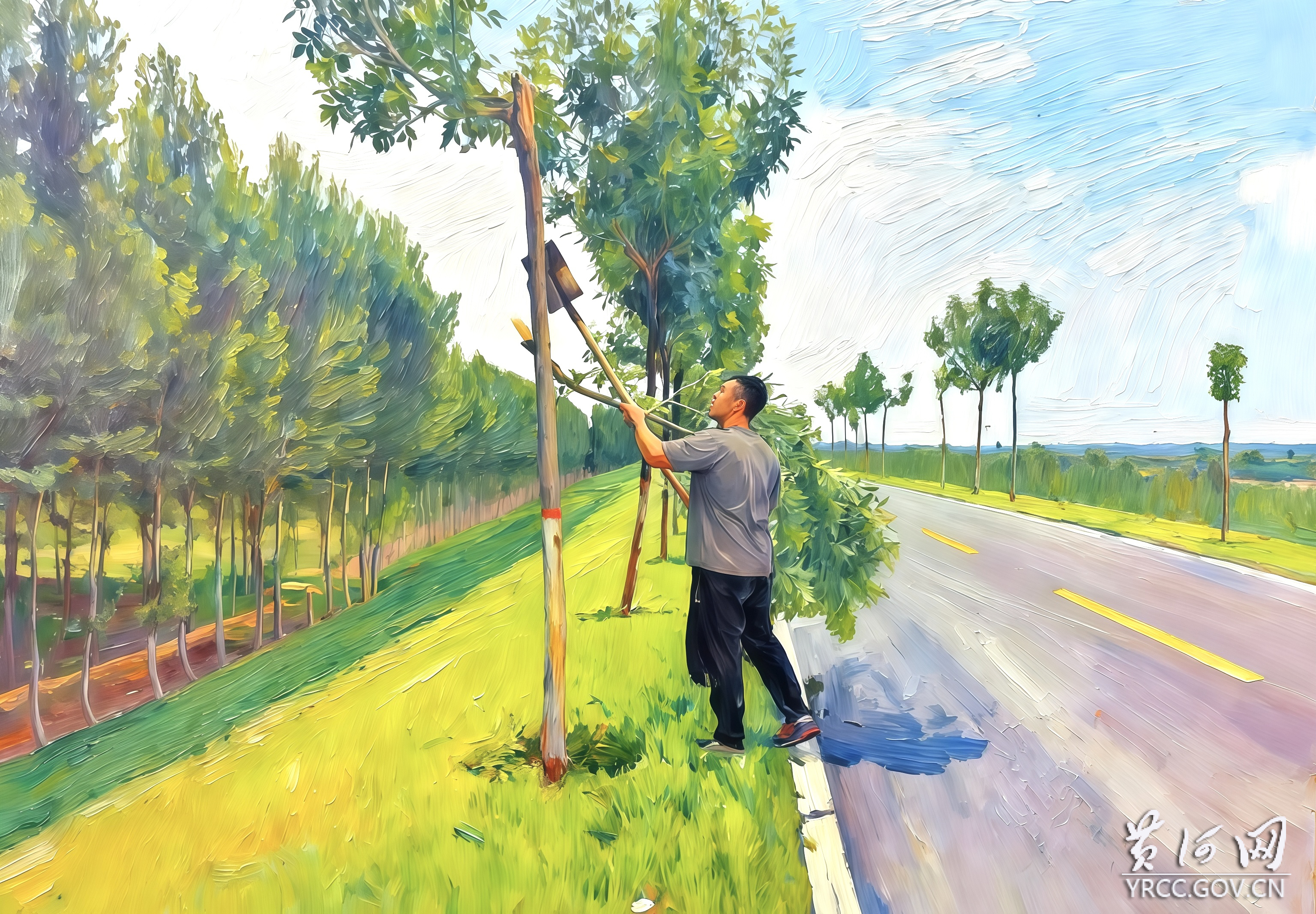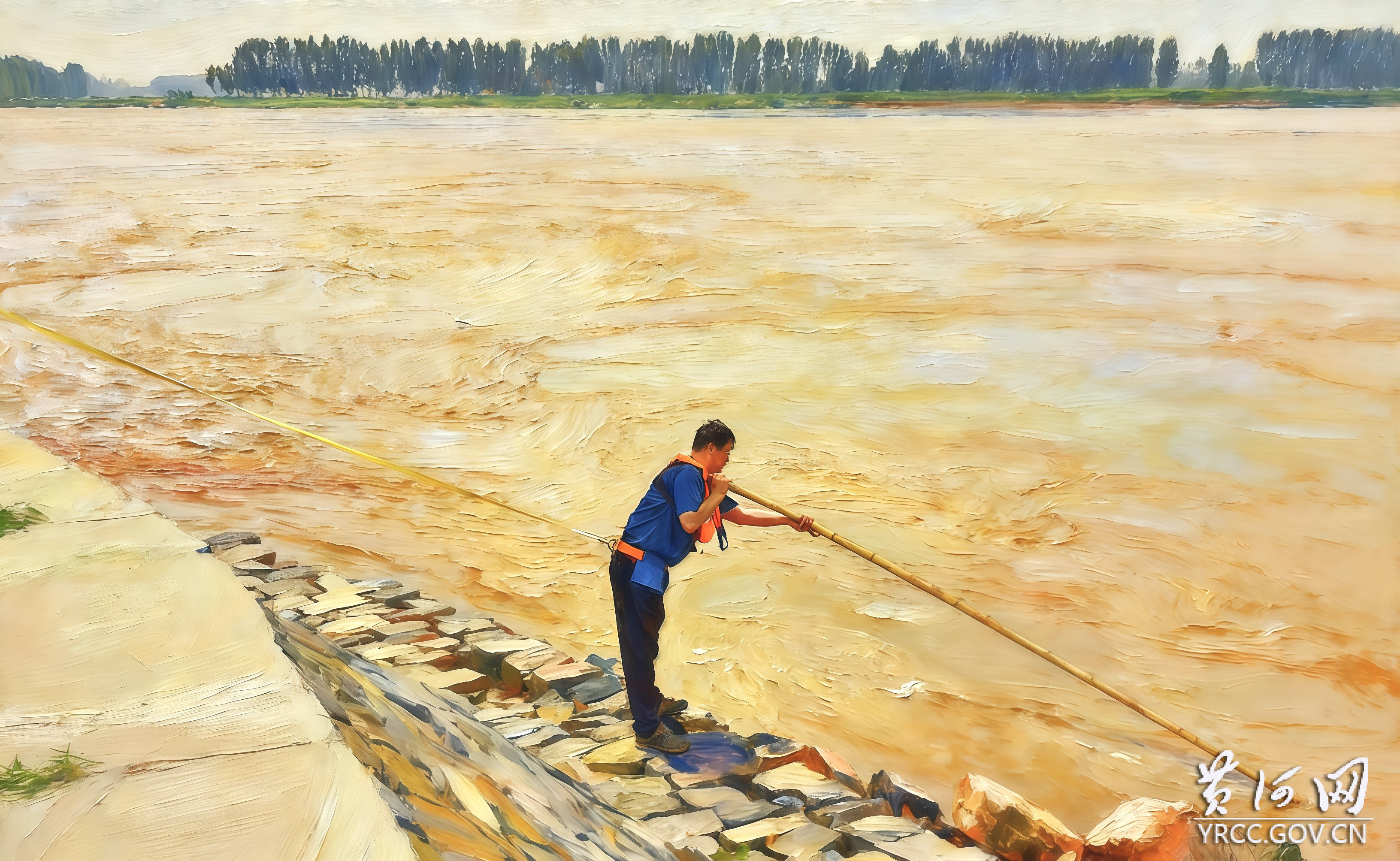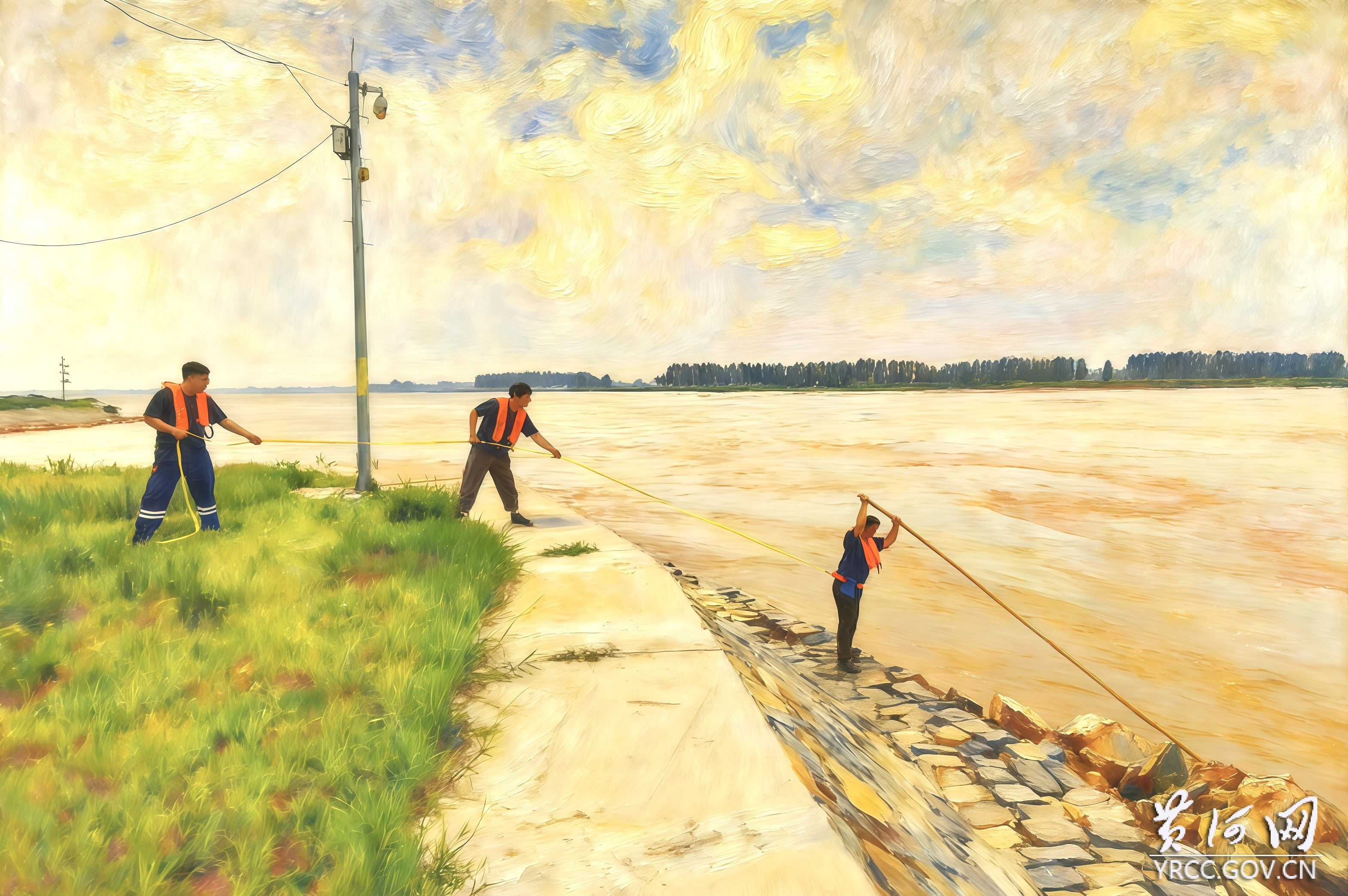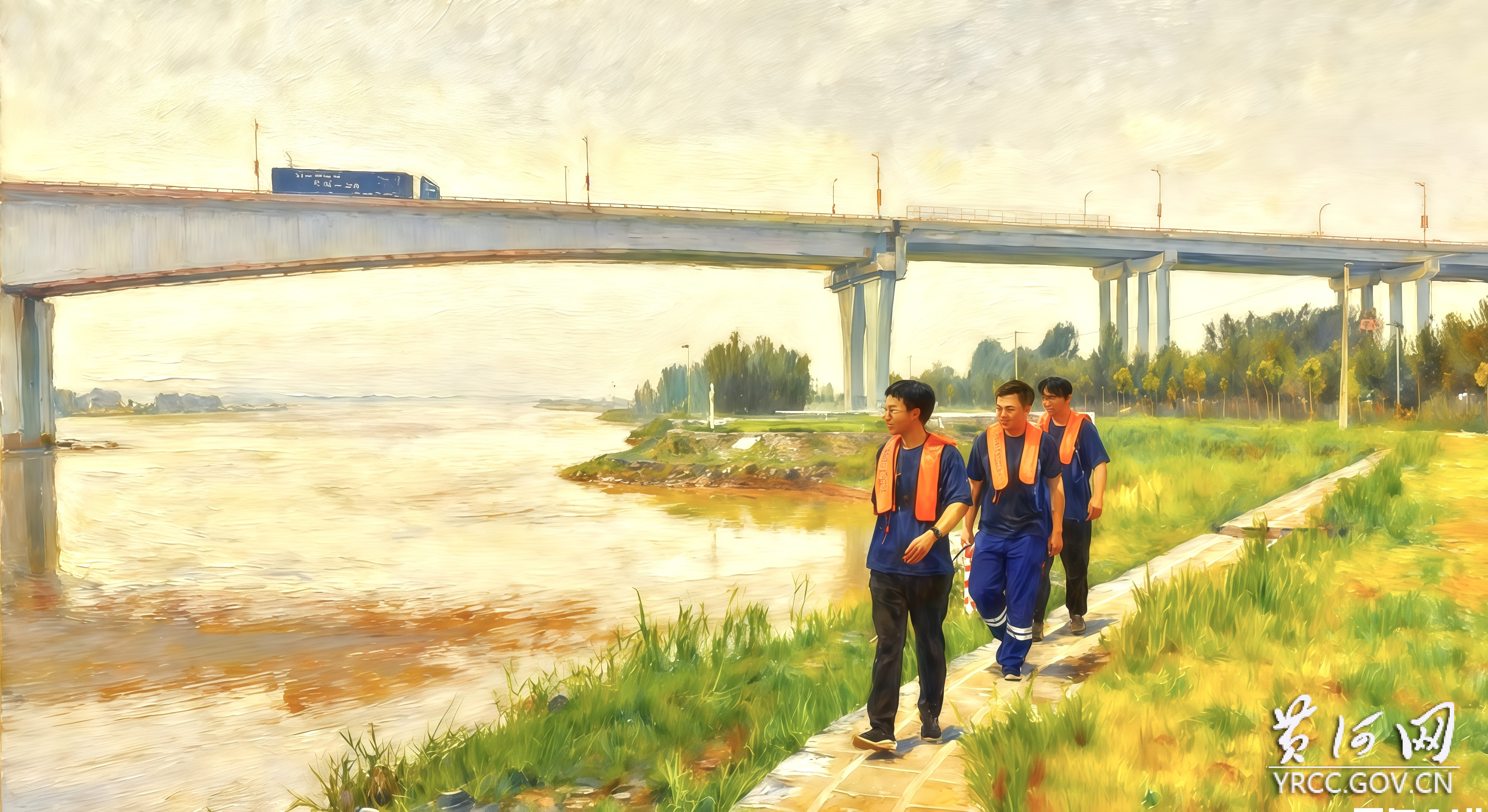 黄河之畔,处处皆是动人景致与坚守的身影。如大地脉络般的黄河水,裹挟着岁月沧桑奔涌向前。岸边,精心为树株补充营养液、修剪枝丫的举动,尽显对生态的匠心呵护;河畔专注测量、巡查的姿态,是用专业守护安澜的生动注脚。这一帧帧平凡而坚韧的画面共同筑牢了安全屏障。