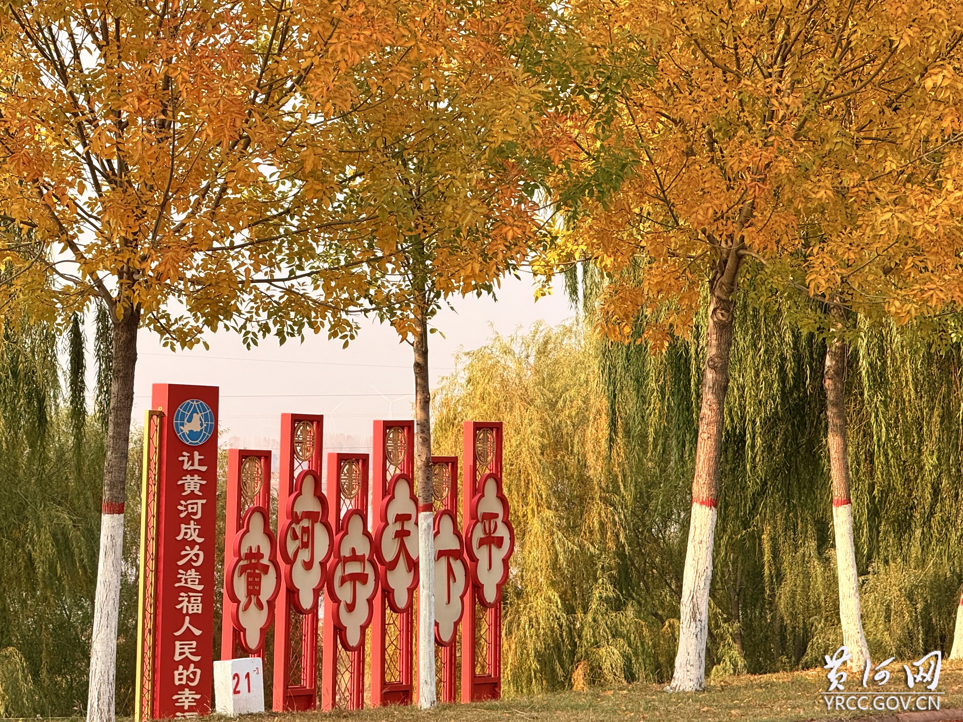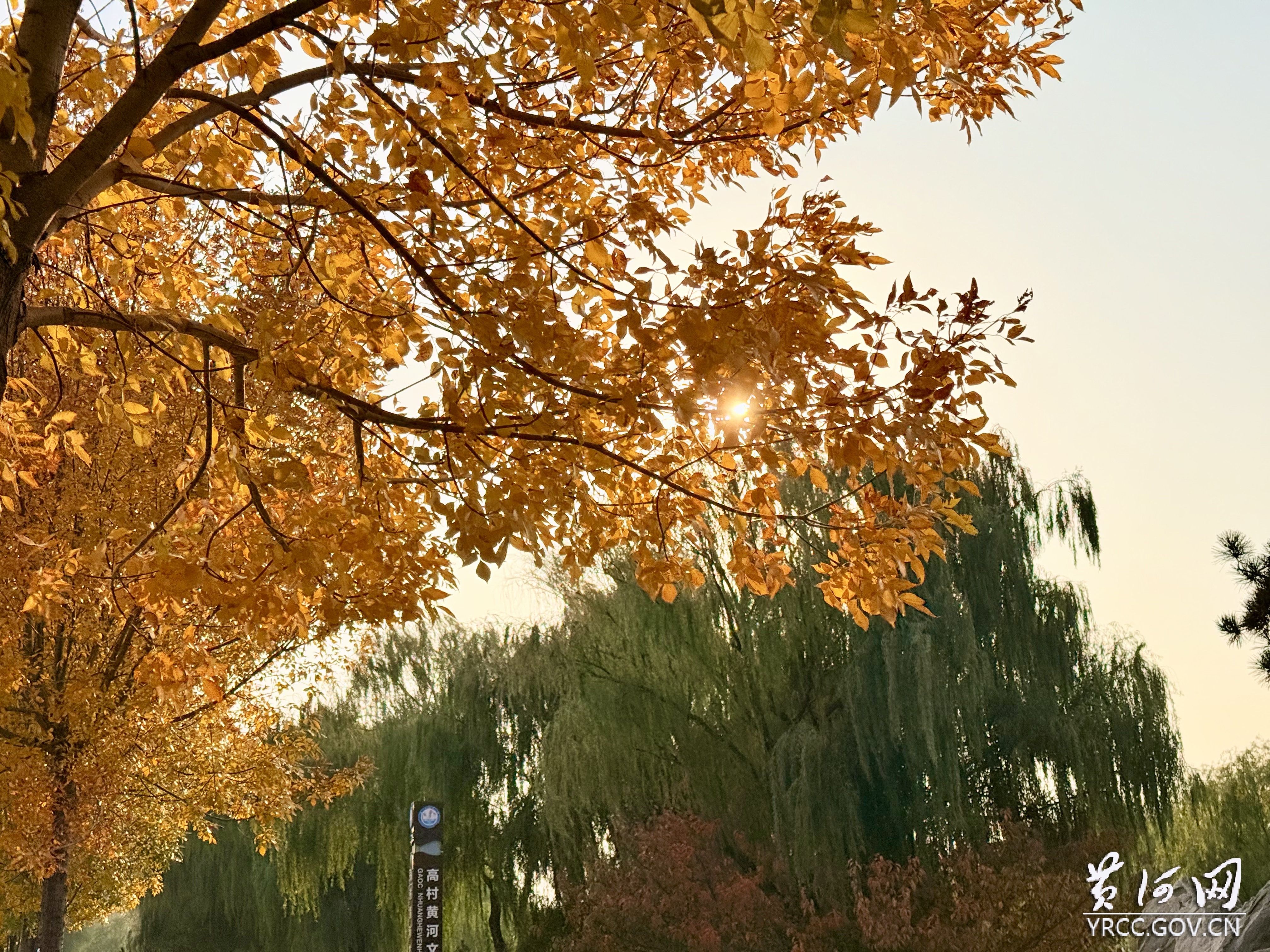 苑旁,堤防舒展秋日长卷。白蜡树黄的透亮,把秋阳滤成碎金铺满枝桠;柳树仍凝着温润的绿,垂落的轻影与白蜡叶时时轻触,黄绿相映成趣。栾树缀满橙红蒴果,风过便洒下“红雨”,给堤坡青草镀上暖晕。抬眼是蓝天,低头是草木,远眺黄河水缓流,水鸟掠过时翅尖触波光 —— 这秋,一半藏着文化苑的厚重,一半漾着长堤的清欢,全浸着黄河独有的温柔。