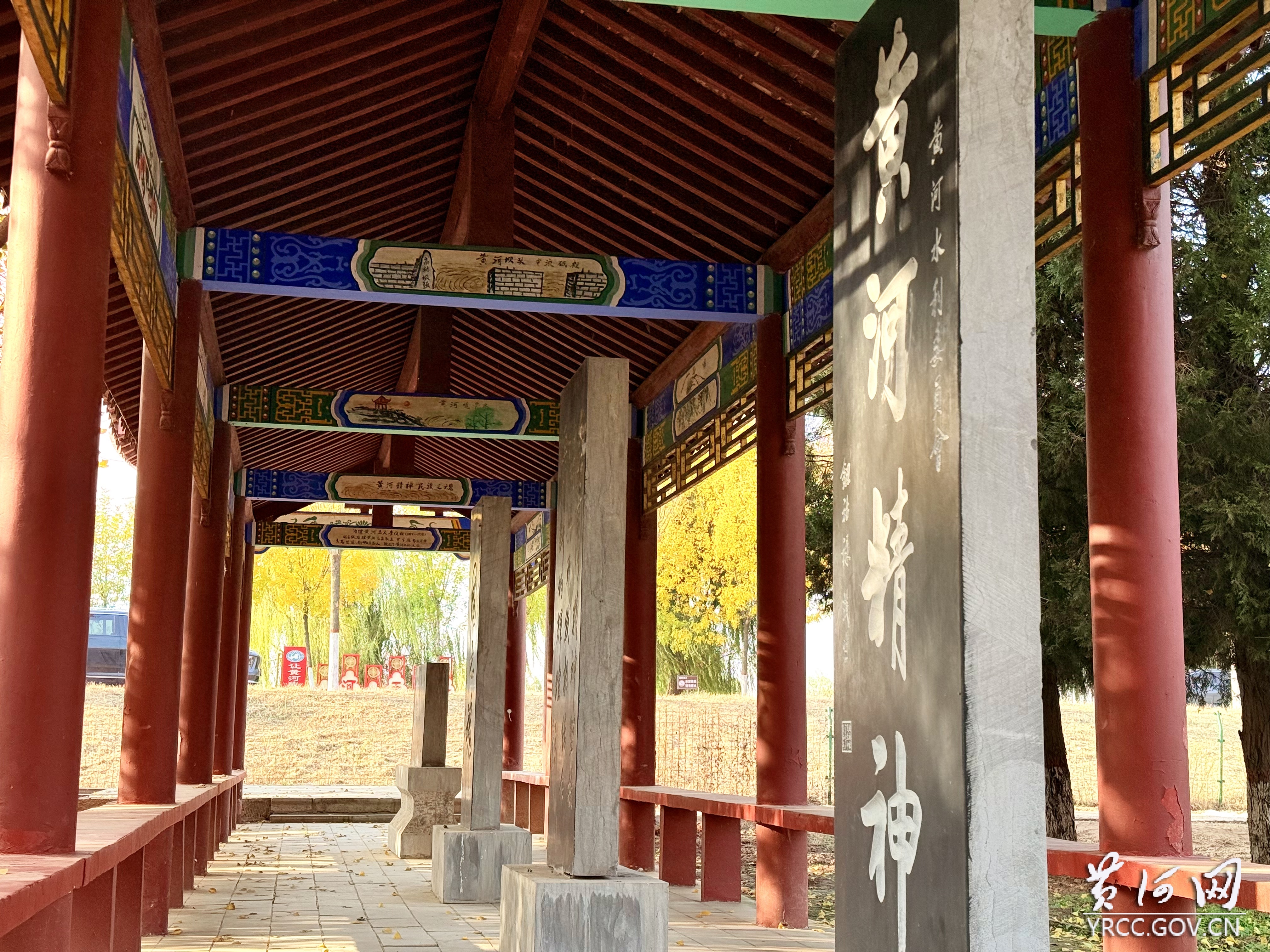 深秋的高村黄河历史文化苑,是秋意酿成的诗。银杏把正午阳光揉碎成金箔,簌簌落在廊顶红瓦上,檐角漏下的碎光,轻吻着记载黄河故事的碑刻。行至“黄河高村抢险纪念碑”前,白色碑身映着澄澈天光,碑上金字愈发夺目,1948年抢险的壮语,似随叶影在阳光下轻轻回响。
