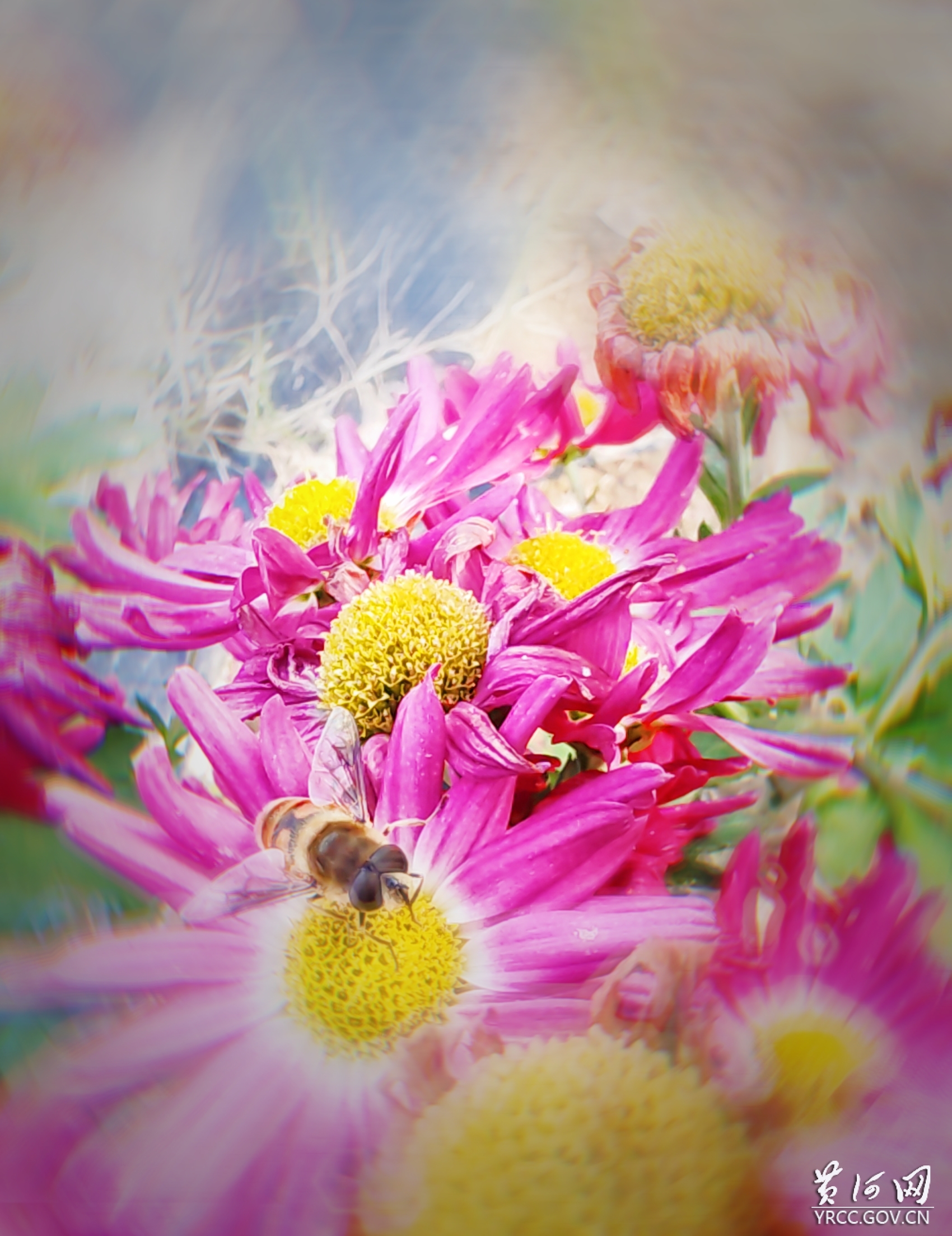 暮秋初冬,黄河水声渐沉,岸边的夏莺与春桃早已敛声息影,唯有一簇簇菊花,在薄霜中绽出金黄、粉白与绛紫,像是大地遗忘在四季的一把碎星,不慎洒落在了母亲河畔。