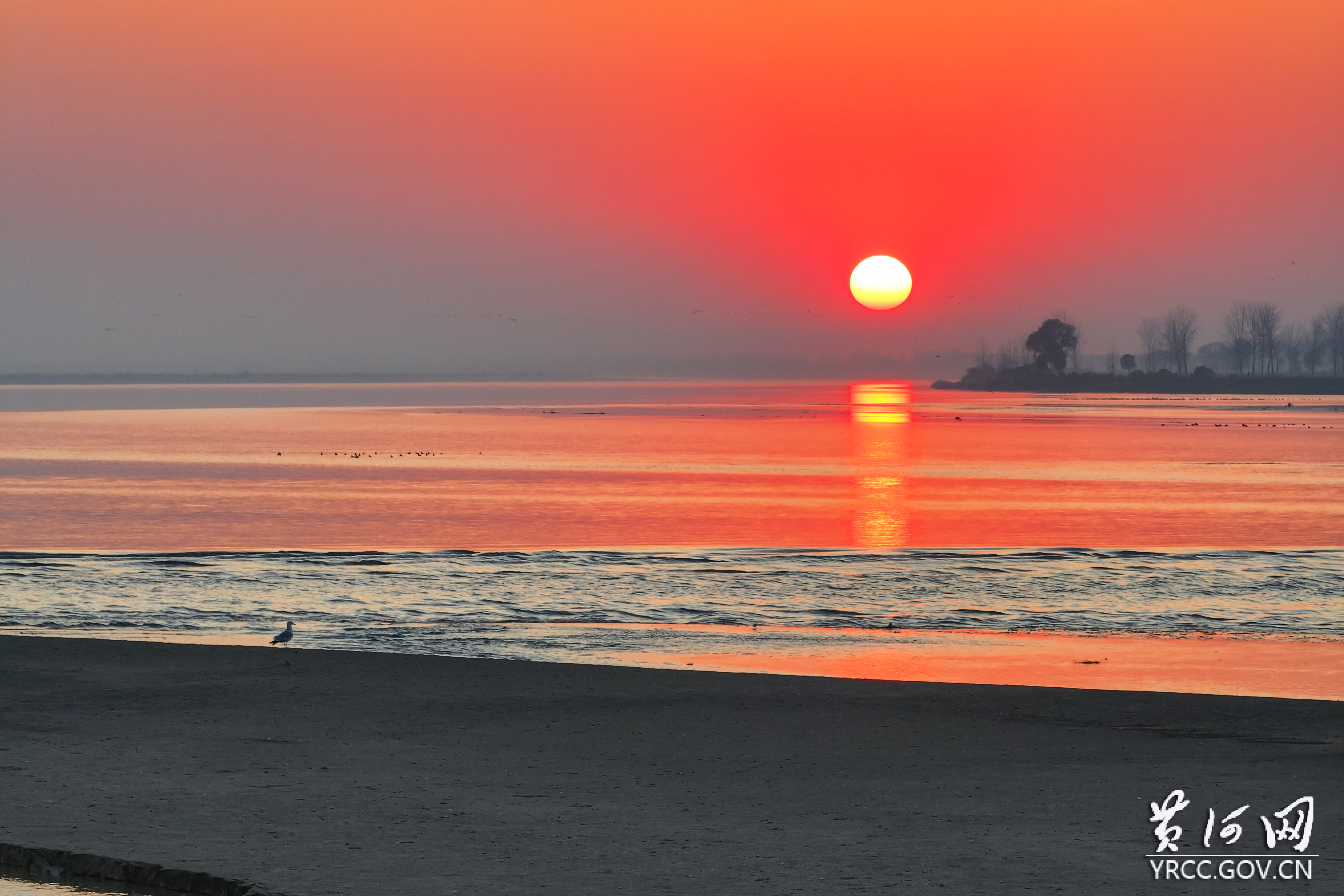 当光影执笔,冬日便有了颜色。在初冬的河南长垣,落日像一枚烧得炽热的铜盘,正缓缓向远处的天际线下沉去,整片天空被染成了一幅流动的锦缎,橘红、金橙与瑰紫交融着,泼洒在冬日沉寂的黄河之上。