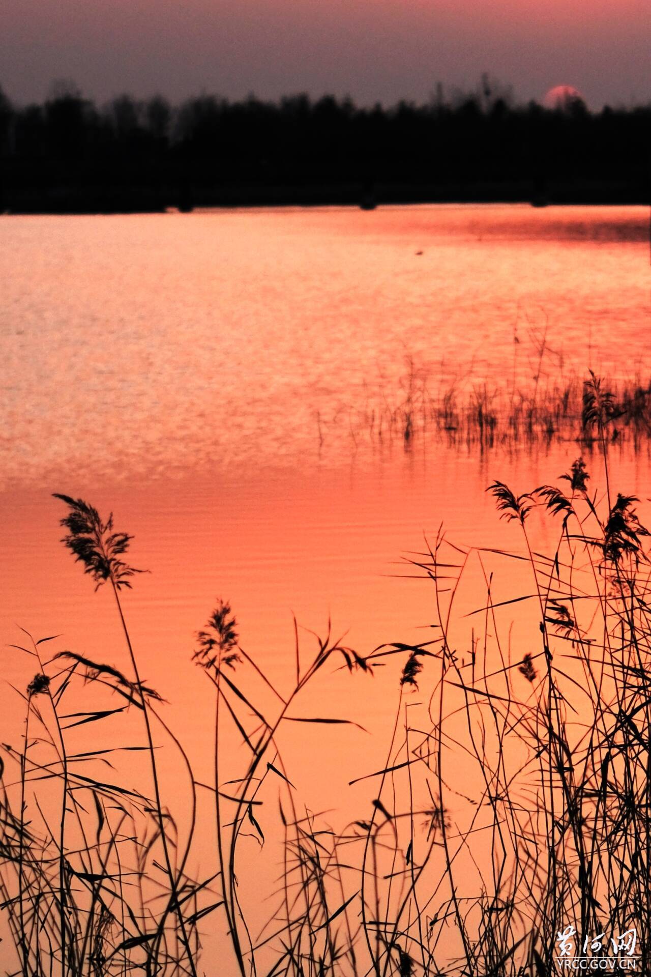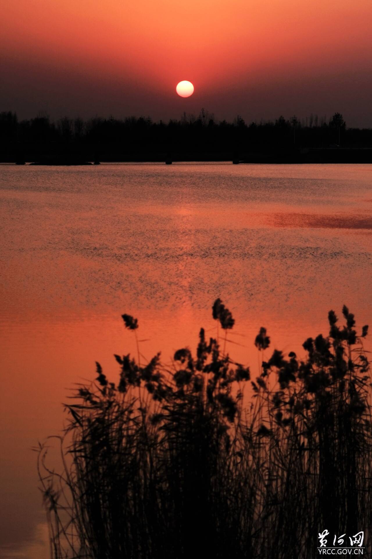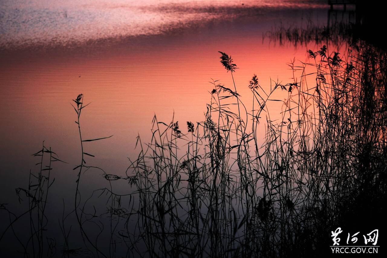 落日泊在树梢头,把天水交接处煨得滚烫。黄河驮着整片余温,用浩荡金波熨帖着白日的煊赫。微风摇过,粼粼波痕便成了散开的焰火。苇丛疏朗挺立,枝丫交错,一簇簇被霞光浸透的剪影,似墨非墨,仿佛一群沉静的画者,以倔强安然的姿态,将漫天火红敛入幽暗的轮廓。