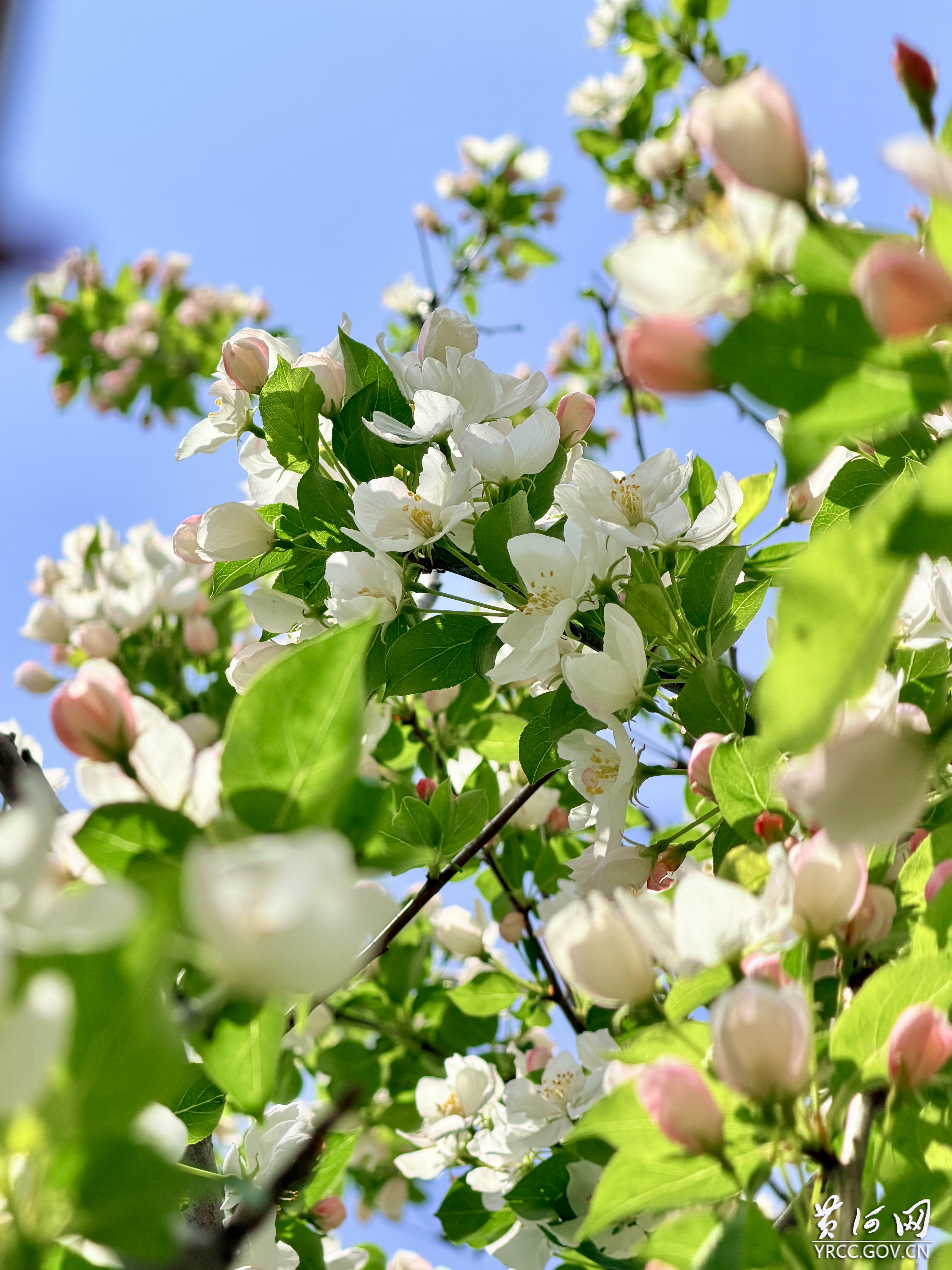 杳杳春来,东风拂过黄河高村堤岸,万物悄然焕新。白玉兰素雅含芳,紫玉兰端庄凝韵,海棠、梨花、桃花与红叶碧桃次第盛开,粉白嫣红交织如画。关山樱缀满枝头,粉云漫卷,与晚春晴光相映成趣。金黄的油菜花铺展滩涂,二月兰紫雾轻笼,阿拉伯婆婆纳点点如星,紫荆花簇满枝条,明艳动人。