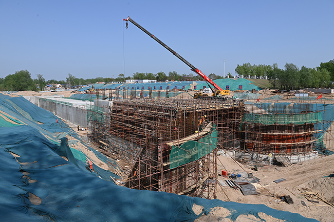 截至4月14日,黄河下游引黄涵闸改建工程(河南段)在建10座涵闸主体混凝土已基本浇筑完成,累计完成混凝土浇筑3.9万立方米,占10座涵闸总量的96.7%,目前正在进行排架柱和土方回填施工。