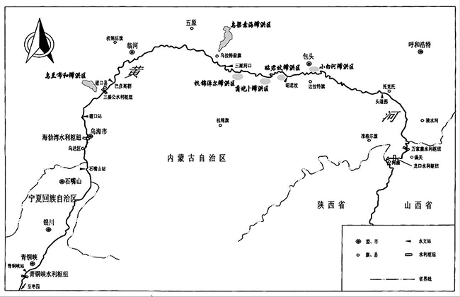 内蒙古河段应急分洪区位置示意图